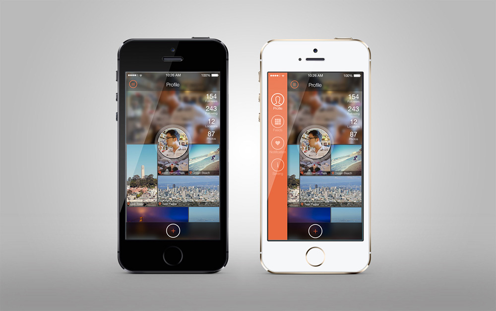 The main objective of this GUI is to clearly display the user's profile picture in the center. Users see their photo galleries and also see where a picture was taken. Smooth animation of UI elements. The interface is intuitive and easy to use. Transparency navigation and tool bar style to help users to use maximized their viewspace.